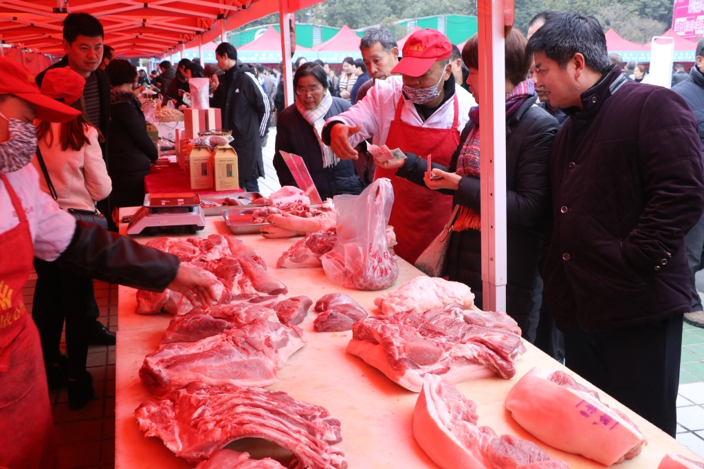 12月23日,陜西陽晨牧業(yè)股份有限公司生豬產業(yè)助力脫貧攻堅,確保市場供應安全“五進”活動啟動儀式在漢濱區(qū)第一書記農產品推介展銷會暨“萬企幫萬村”推進會上亮相,向廣大市民推介展銷陽晨放心豬肉。